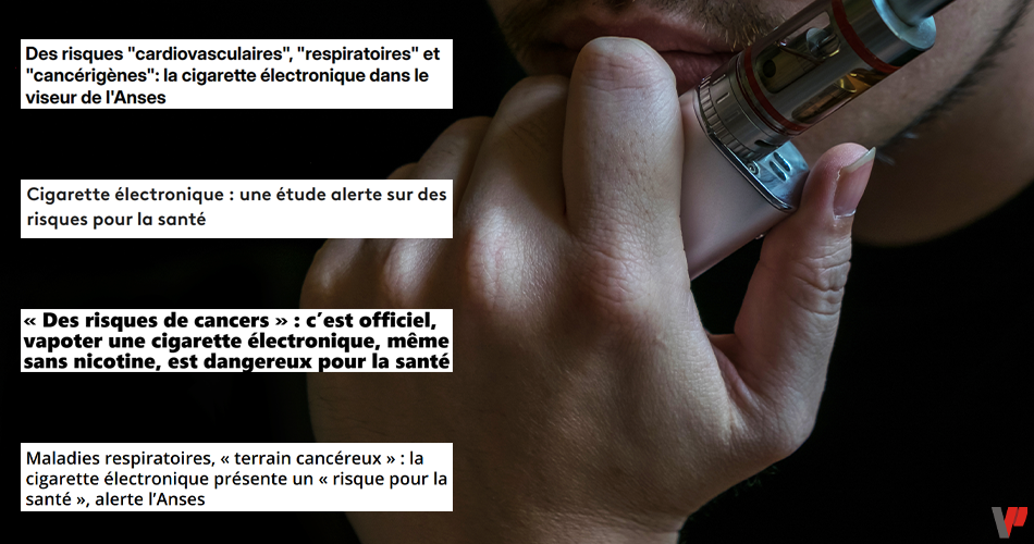 Contrairement au rapport complet, le communiqué de presse n’opposait pas les risques du vapotage à ceux du tabagisme. Une absence de nuance qui a rapidement conduit plusieurs médias à s’en prendre à l’outil de sevrage tabagique. Ainsi pouvait-on lire, dans la presse française, des titres comme « Des risques “cardiovasculaires”, “respiratoires” et “cancérigènes”: la cigarette électronique dans le viseur de l’Anses » (BFMTV), « “Des risques de cancers” : c’est officiel, vapoter une cigarette électronique, même sans nicotine, est dangereux pour la santé » (PresseCitron), « Cigarette électronique : une étude alerte sur des risques pour la santé » (FranceInfo), ou encore « Maladies respiratoires, “terrain cancéreux” : la cigarette électronique présente un “risque pour la santé” » (LaNouvelleRépublique).