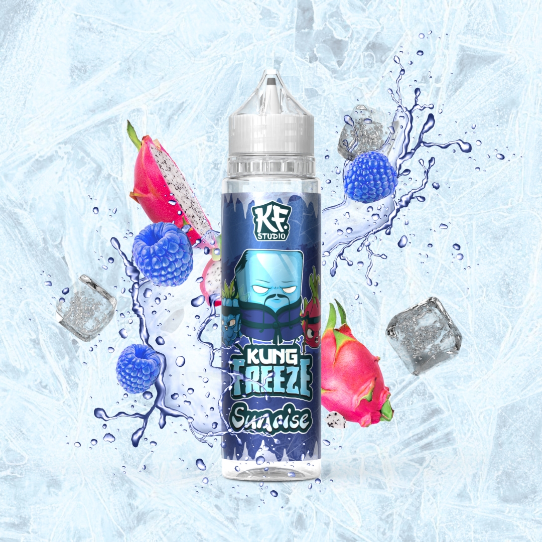 KUNG FREEZELa fraîcheur de la framboise bleue s’unit à la douceur du fruit du dragon, donnant naissance à une fusion glacée et acidulée. Une aube glaciale où chaque rayon révèle une fraîcheur insoupçonnée.