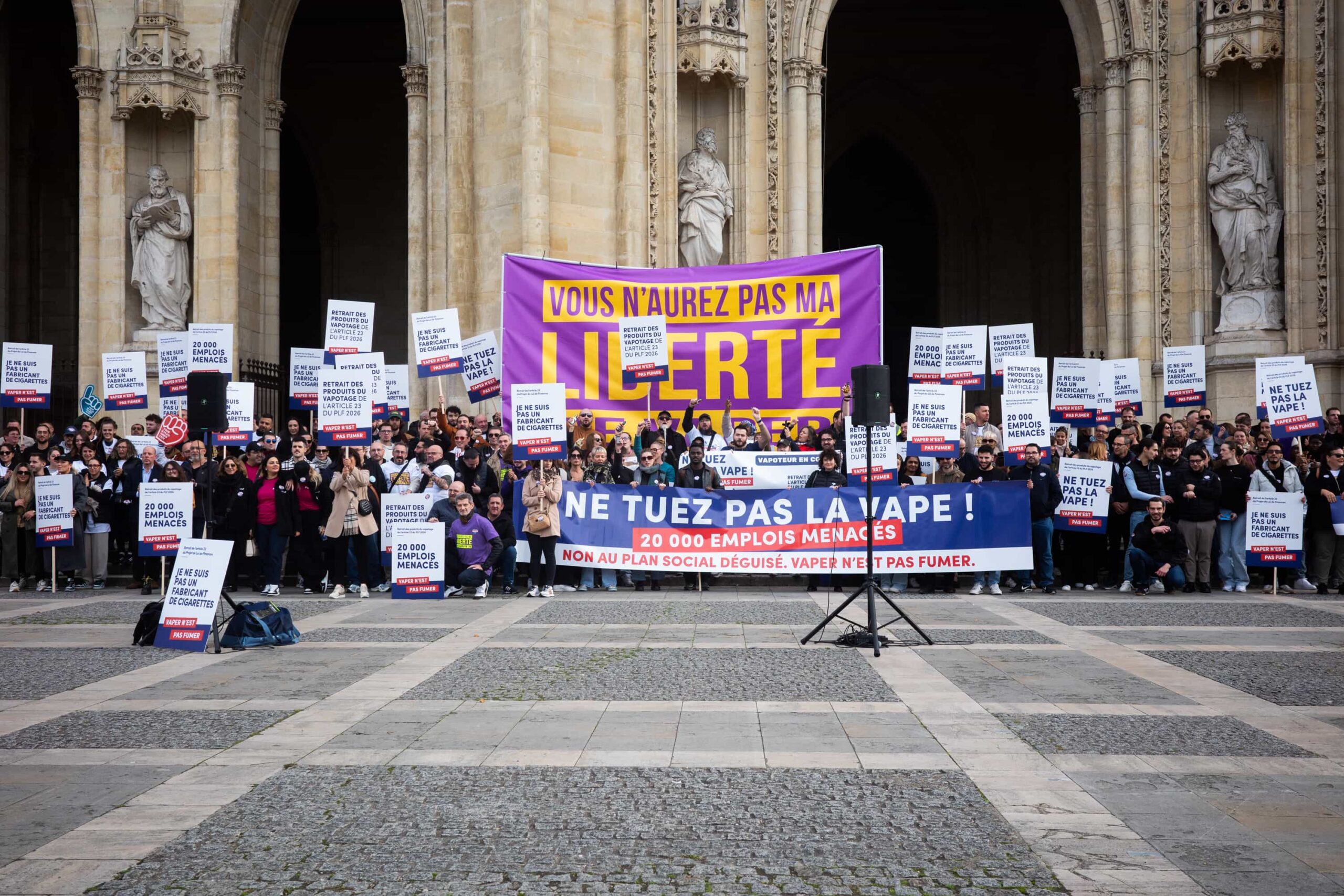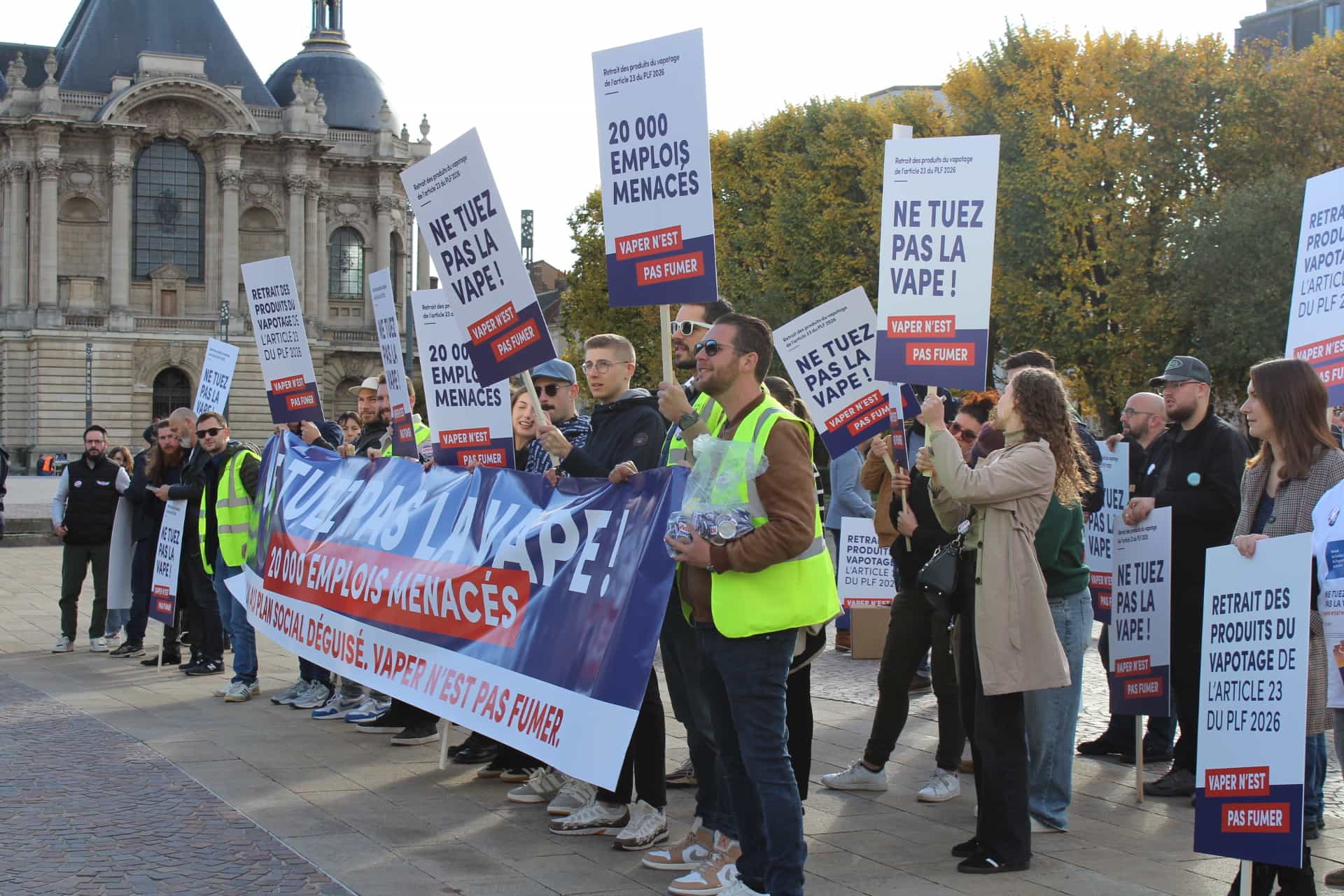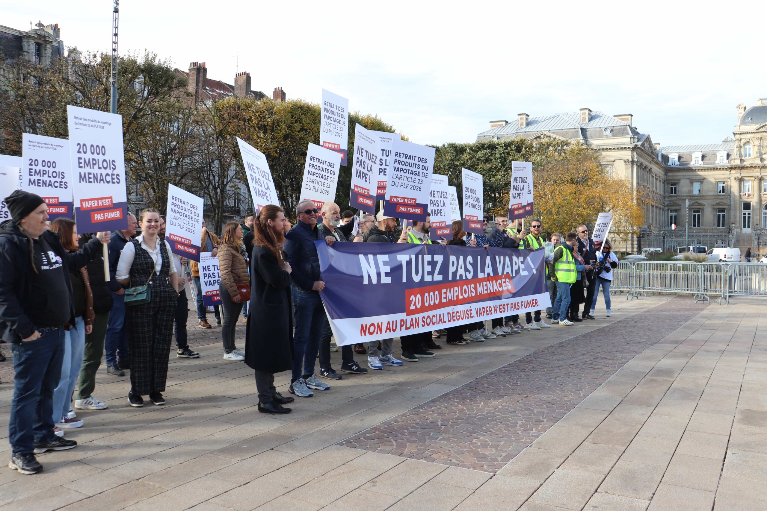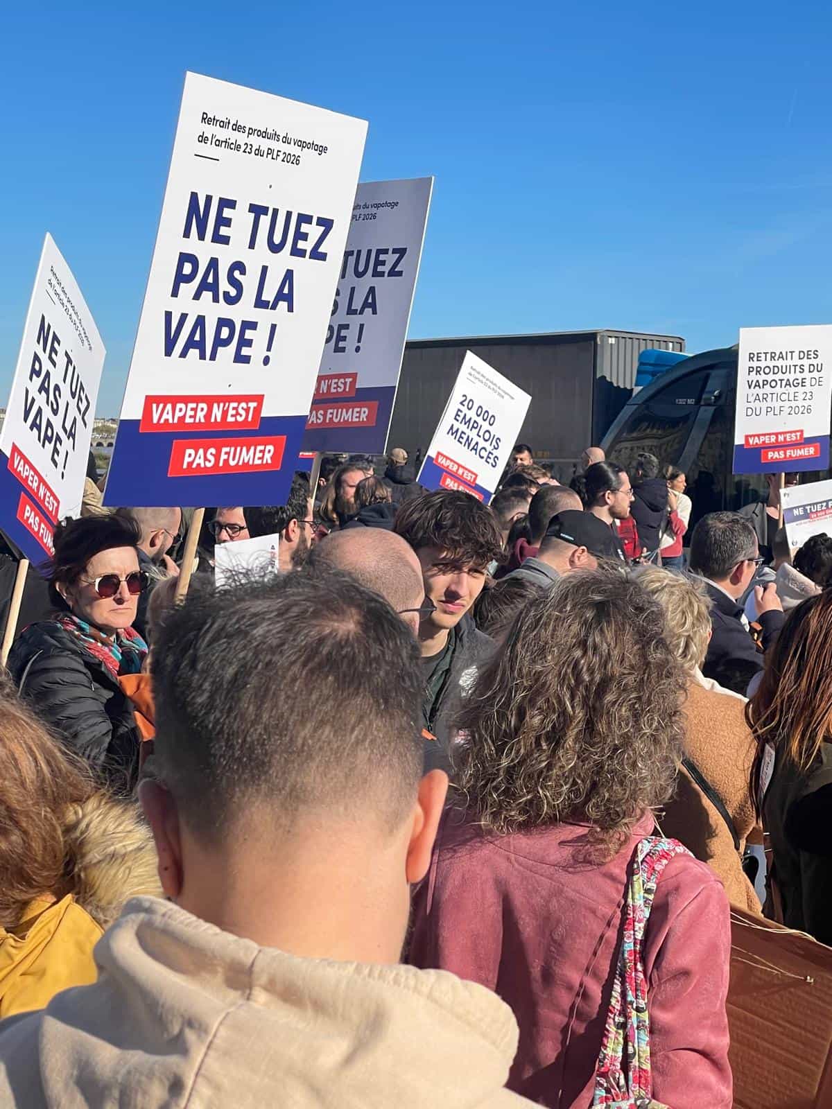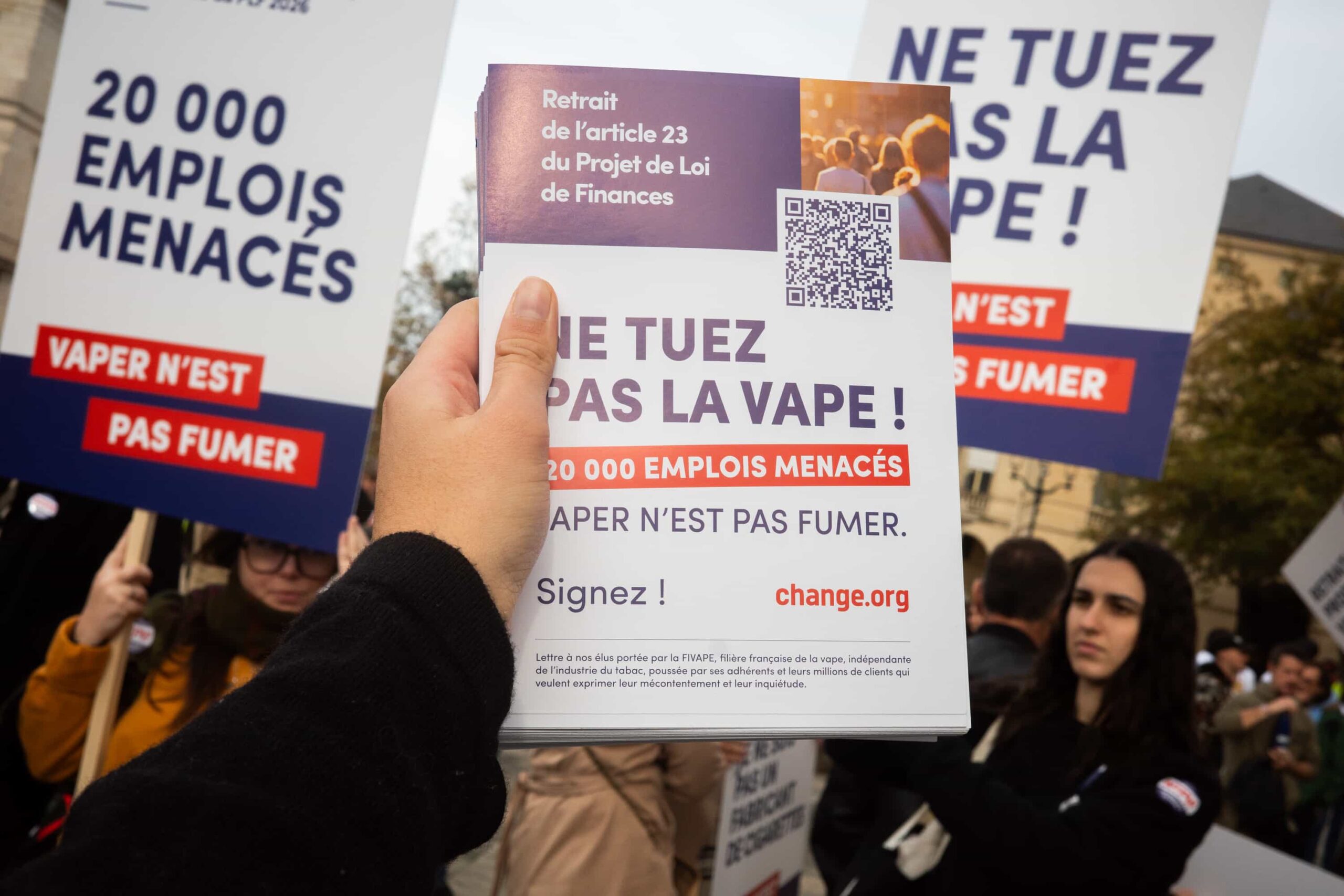 Au cœur des différents cortèges, tous les participants clamaient le même message : « Vaper n’est pas fumer ! », en référence à l’article 23 du projet de loi de finances 2026 du gouvernement, qui assimilerait les produits du vapotage aux produits du tabac. Avec, pour la filière française de l’e-cigarette, des répercussions dramatiques.