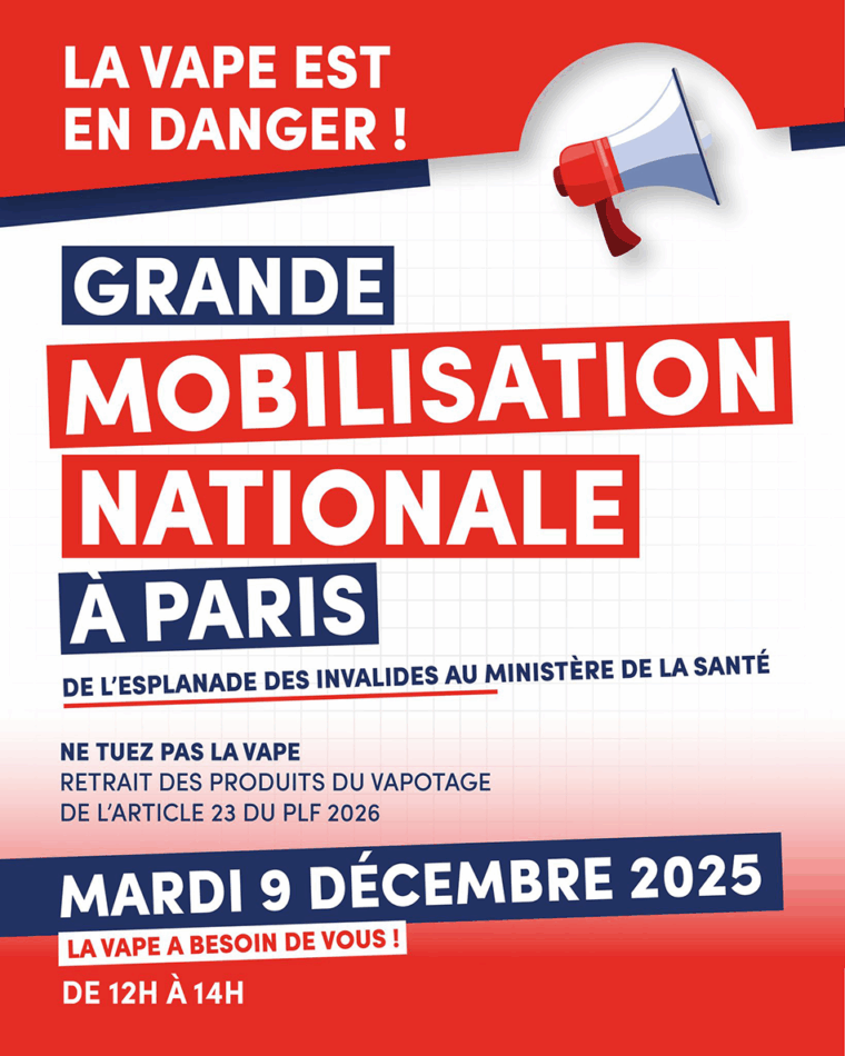 Le futur PLF 2026 contiendra-t-il un article signant la mort de la filière française du vapotage ? Seul l’avenir le dira. Seule une mobilisation soutenue, et continue, de tous les défenseurs de la cigarette électronique, pourra permettre de l’éviter.