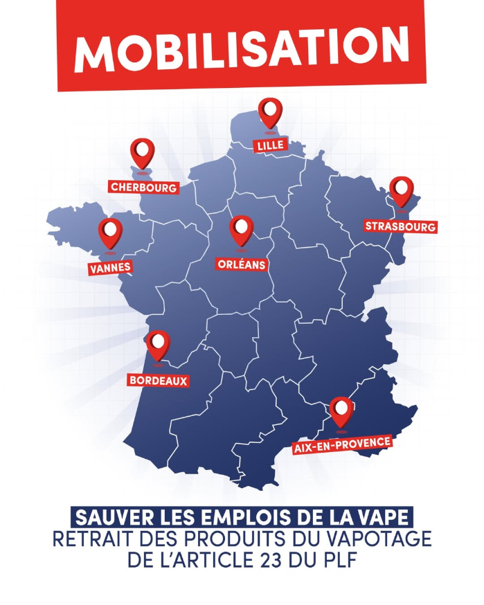 Plusieurs manifestations sont en train d’être organisées en France par le collectif Ne tuez pas la vape. Les 4 et 5 novembre 2025, les vapoteurs se regrouperont dans plusieurs grandes villes de l’Hexagone.
