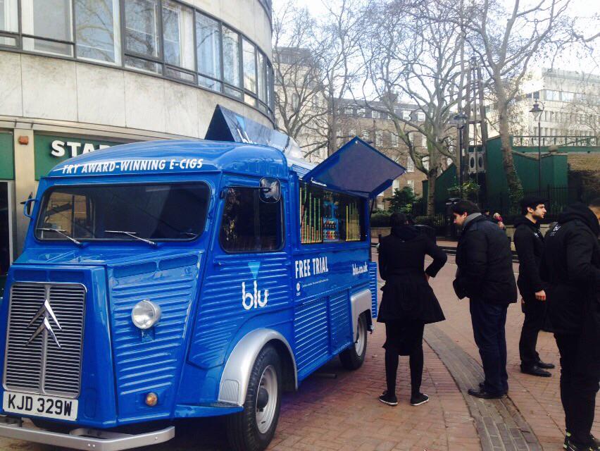 La marque a entièrement relooké une vieille Citroën Type H, pour partir en tournée à travers tout le Royaume-Uni à la rencontre de fumeurs adultes et de vapoteurs pour leur faire essayer ses produits. Une équipe d’ambassadeurs Blu offre sur place conseils sur les produits et saveurs de la gamme aux clients potentiels et les oriente vers les distributeurs locaux. Quant aux visiteurs plus curieux ils peuvent discuter avec un “aromaticien Blu” à l’intérieur de la camionnette.