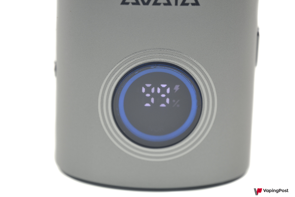 L’écran est bien lumineux et affiche le niveau de batterie restant. Le cercle coloré change d’aspect selon le niveau d’autonomie et aussi selon le mode sélectionné (3 modes). En un coup d’œil, on situe immédiatement la batterie disponible dont la capacité est de 1100 mAh. Ce n’est pas la plus conséquente de la catégorie, mais la cartouche occupe une bonne place pour laisser moins d’espace à la batterie.
