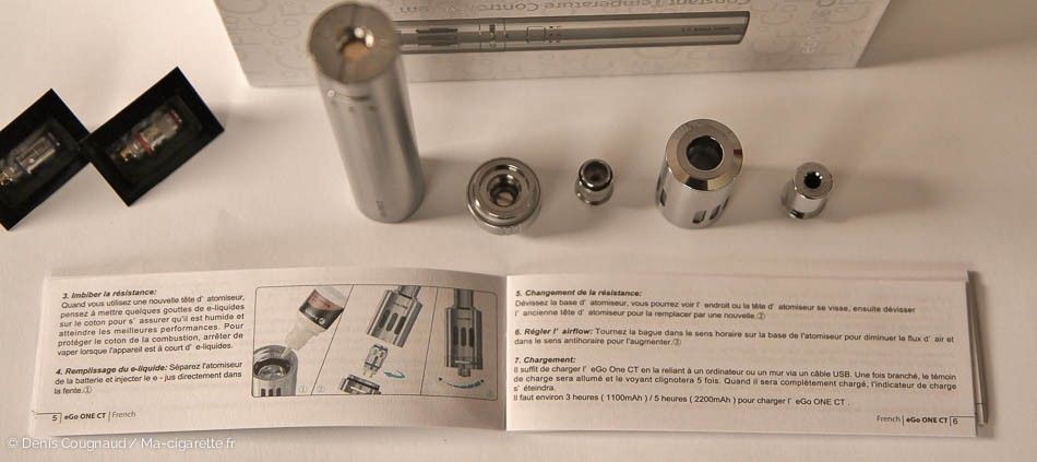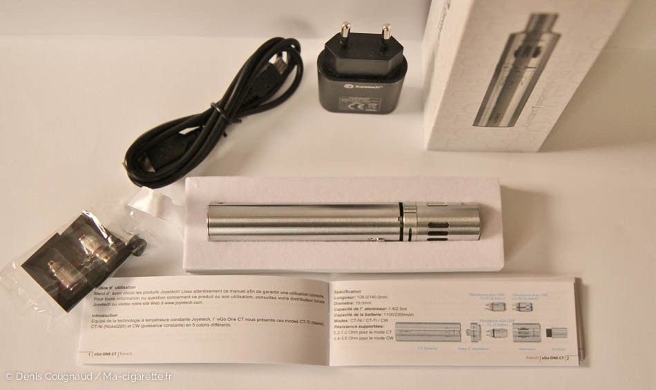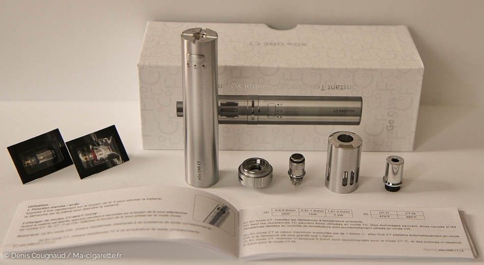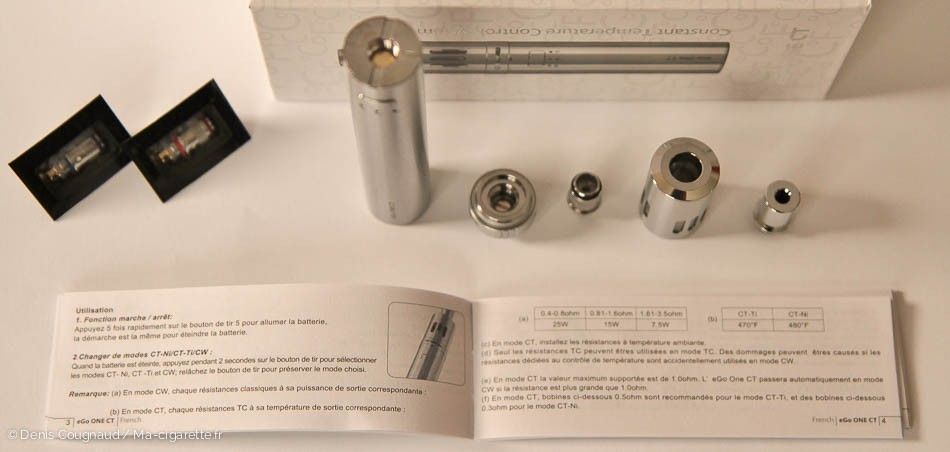 Dans la première version, je critiquais sans ménagement la température que pouvait atteindre cette eGo One avec la résistance de 0.5 ohm. En toute logique j’aurais tendance à penser qu’un contrôle de température est de fait une bonne chose pour la santé certes, mais aussi pour la sécurité tout en espérant que la qualité de vape offerte par la version première soit conservée dans cette version CT. Encore que cette version CT conserve tout de même un mode standard de vapotage en wattage variable avec une résistance classique de 1 ohm.