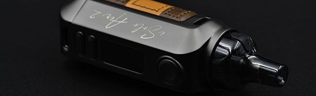 Bien que la box possède une épaisseur de 30 mm, le diamètre maximum de l’atomiseur ne devra pas excéder 25 mm pour rester flush sur le côté. C’est dommage de ne pas pouvoir profiter de cette épaisseur supplémentaire, car en recentrant le connecteur de 5 mm, cela aurait permis d’accueillir des atomiseurs de plus grands diamètres.