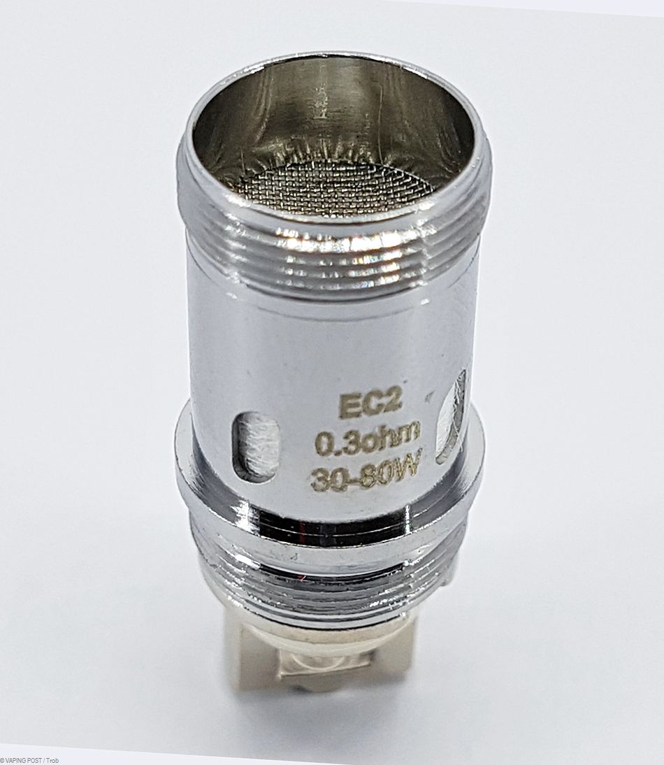 Et justement, pour la sortie de ce nouveau Melo, Eleaf nous gratifie de nouvelles résistances EC2 fabriquées avec un double fil de kanthal entouré de coton organique, et possèdant une petite grille sur le dessus pour éviter les projections de liquide. Elles existent en deux versions : 0,3 ohm pour une puissance recommandée entre 30 et 80 W, et en 0,5 ohm pour une puissance recommandée entre 30 et 100 W. À noter que ces résistances ne sont qu’une évolution des résistances EC et non pas un changement de format. La bonne nouvelle, c’est qu’il est toujours possible d’utiliser avec le Melo 4 les anciennes résistances prévues à l’origine pour les clearomiseurs Melo 3, Melo 2, Melo, iJust 2, Ijust 2 mini et Atlantis, au cas ou vous en auriez encore au fond d’un tiroir.