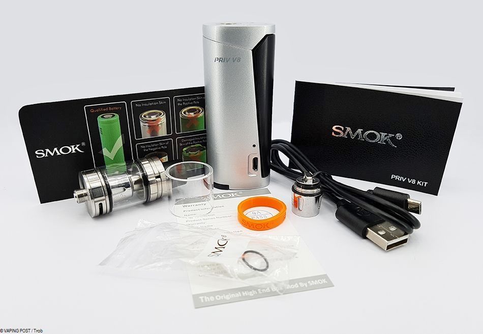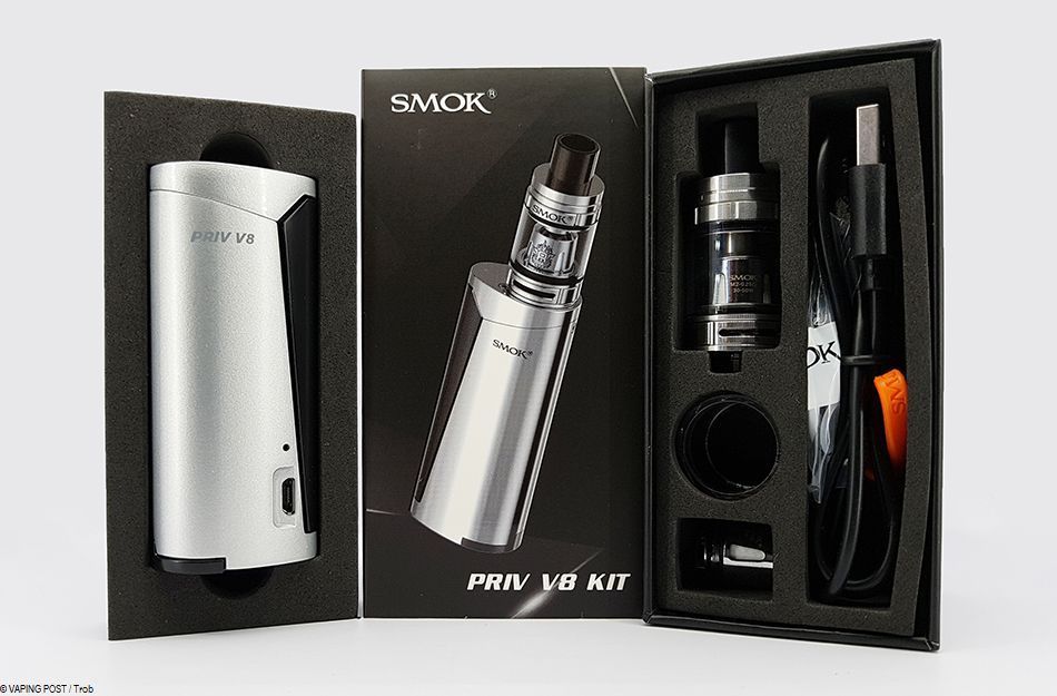 Le kit Priv V8 de chez Smok est constitué d’une nouvelle box, la Priv V8, et de l’incontournable clearomiseur TFV8 Baby. Si nous commençons à bien connaître le TVF8 Baby, la Priv V8 est bien plus surprenante que ne le laisse présager son apparente simplicité.