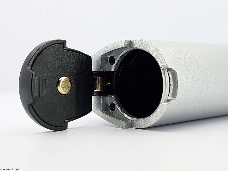 Heureusement, elle possède bien d’autres atouts : elle est légère (85 g), accepte des atomiseurs jusqu’à 24,5 mm de diamètre en restant flush, sa finition est excellente avec une peinture qui ne retient pas les traces de doigts et qui semble résistante, elle est ultra simple à utiliser et possède un bouton de feu sous forme de gâchette. Là, elle devient plus intéressante.