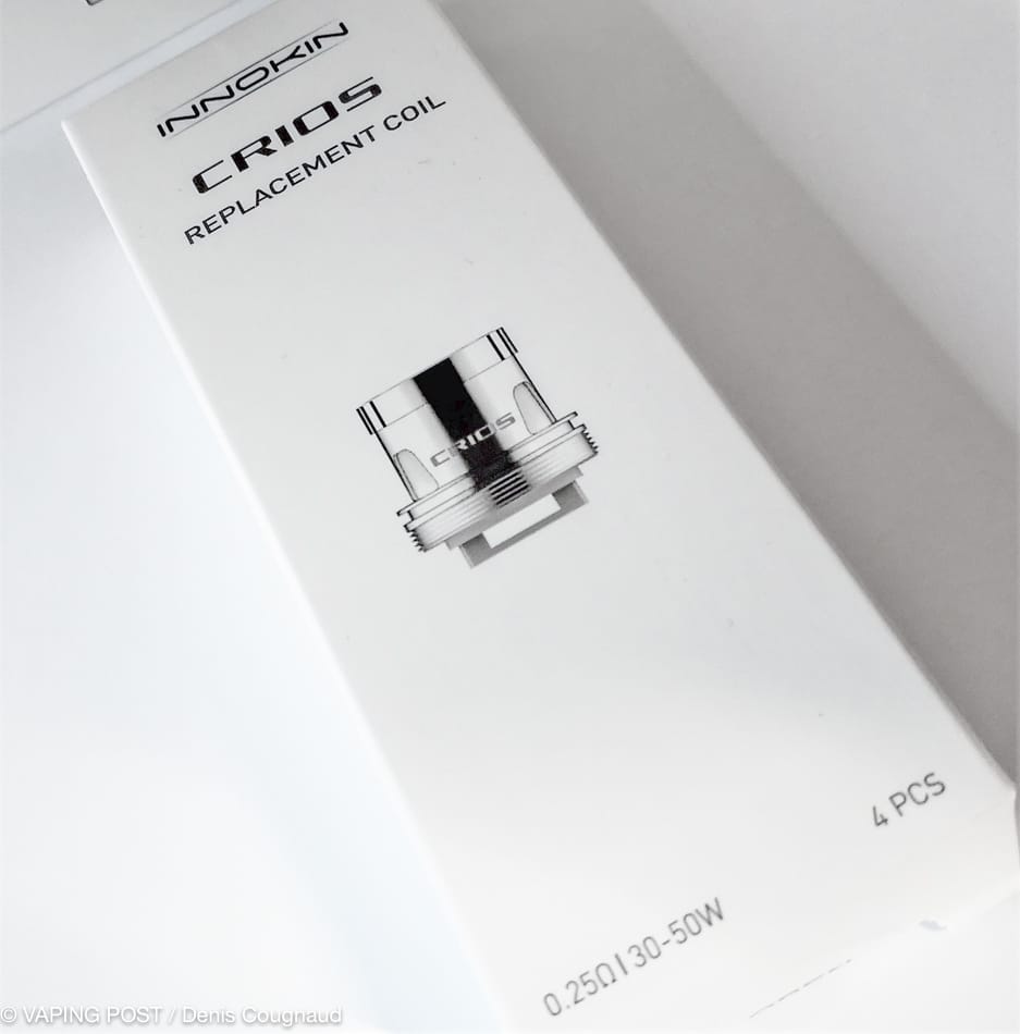 Les nouvelles résistances verticales du Crios calibrées à 0.25 ohm marchent franchement très bien et procurent une vape puissante et très aérienne qui met un moment à perdre son gout de neuf. Mais après c’est de la vraie bonne vape aérienne. Ça marche sérieusement, mais à quelques 3 € la résistance, ce serait pénible que cela ne fonctionne que moyennement.