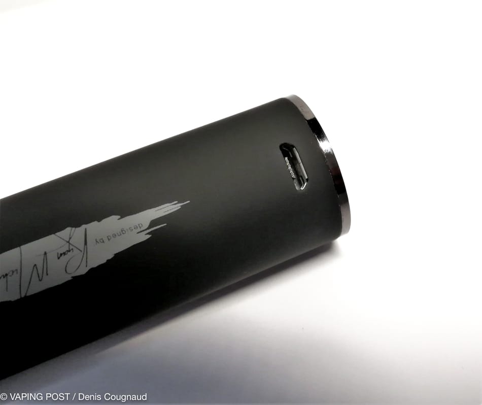 Ce Riptide embarque un accu propriétaire et non interchangeable de 3000 mAh réel qui reste rechargeable uniquement via l’USB correctement positionné en bas du Mod. C’est-à-dire qu’il sera mieux protégé des éventuelles coulures de liquide.