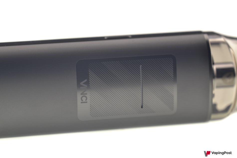 Sur le côté opposé, une connectique USB-C est disponible pour la recharge rapide de la batterie intégrée de 2000 mAh. C’est une très bonne autonomie pour un pod de ce format qui reste très compact en main. Si le Vinci S peut délivrer jusqu’à 40 W, la résistance fournie de 0,8 ohm se montre plutôt sage en consommation électrique et préserve ainsi la durée d’utilisation avant une charge. Il est possible de vapoter pendant la recharge.