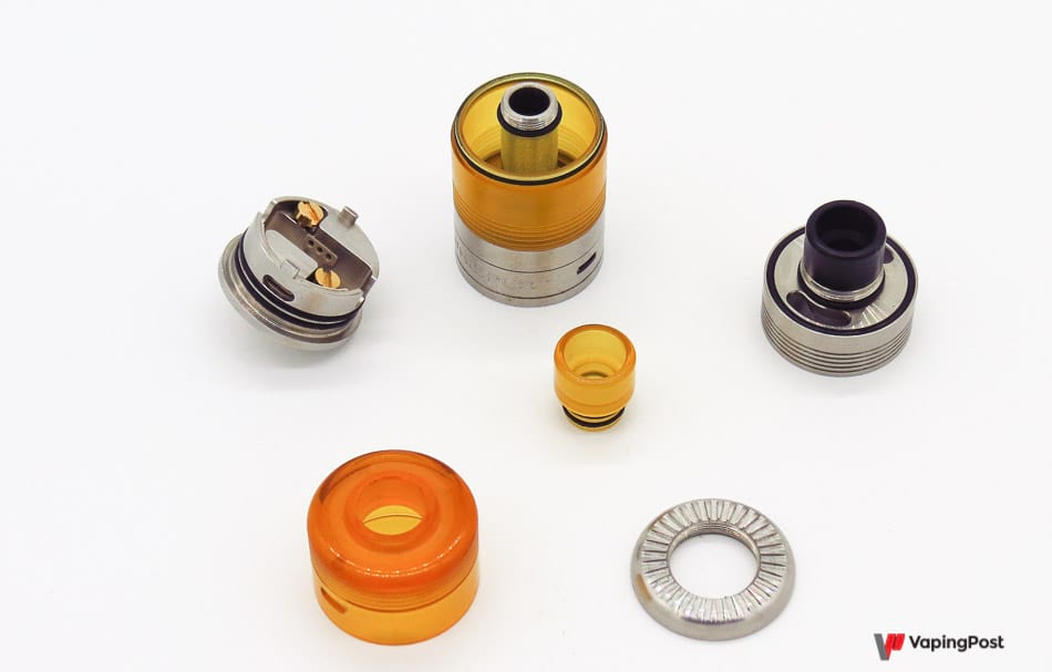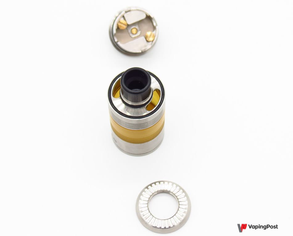 Le montage en lui-même est très simple, à condition de vous rappeler de faire votre coil “à l’envers”, pattes vers le haut. Une fois en place, il suffira de jouer un peu avec sa hauteur par rapport aux air flow pour varier les rendus, comme sur les drippers bâtis sur ce principe. Il y a largement assez de place pour tous types de résistances, des plus sages aux plus acrobatiques, en simple coil.