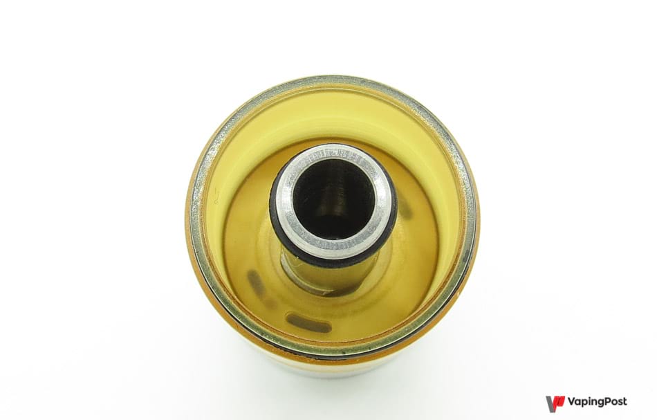 La base en elle-même est dotée d’une cuve moyennement profonde, qui contiendra quelques gouttes de liquide, mais ce n’est pas grave : le pin bottom feeding fourni vous simplifiera grandement la vie. Le tank, quand à lui, offre une capacité de 5 ml, assez appréciable.